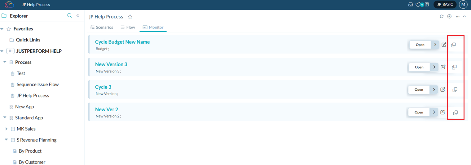 Users can now navigate to Explorer >> Process, select any available process, and access the Monitor tab. Each cycle will now display a copy icon next to the edit icon.